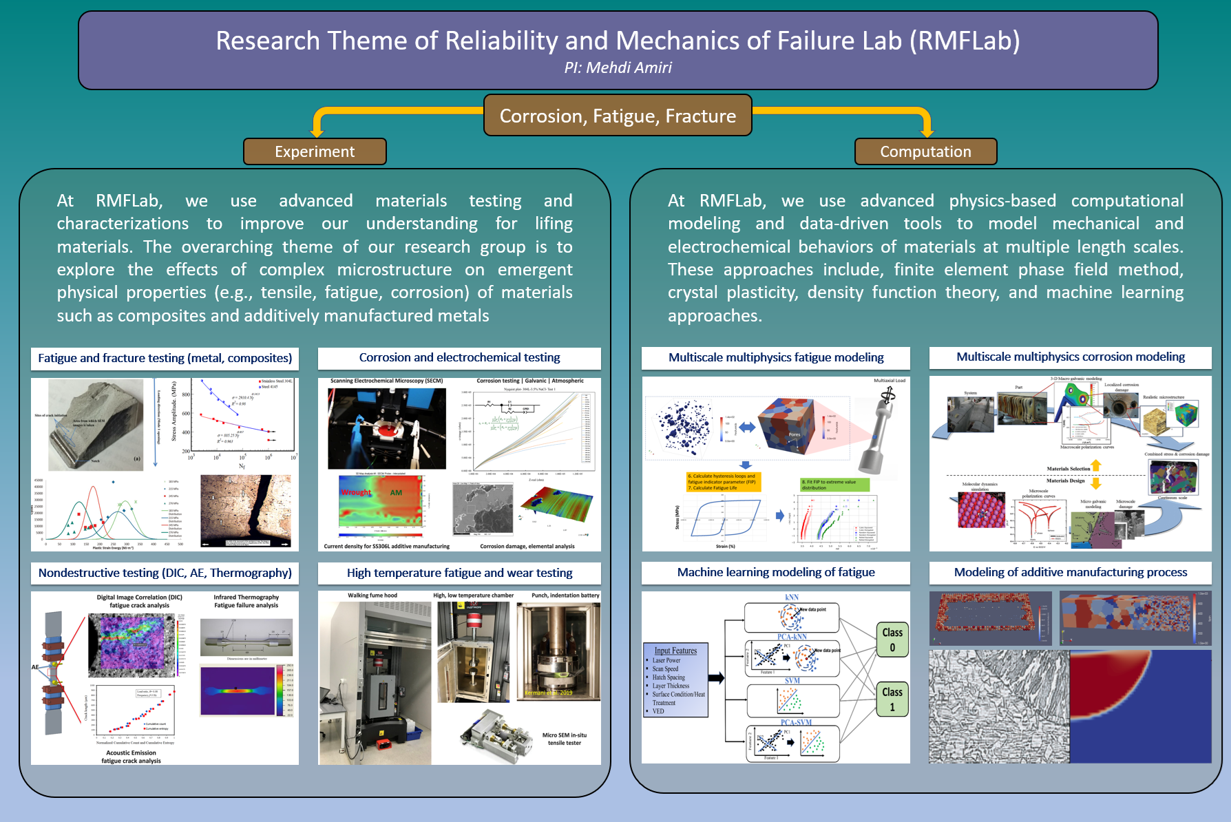At RMFLab, we use advanced physics-based computational modeling and data-driven tools to model mechanical and electrochemical behaviors of materials at multiple length scales. These approaches include, finite element phase field method, crystal plasticity, density function theory, and machine learning approaches.